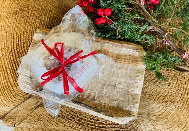 翌日、シュトーレンを乗せてみました。一日経っただけですが、彫った部分が乾いて馴染んでいます。シュトーレンと同じく、どんな風に変わって行くのかも、グリーンウッドワークの楽しみです。