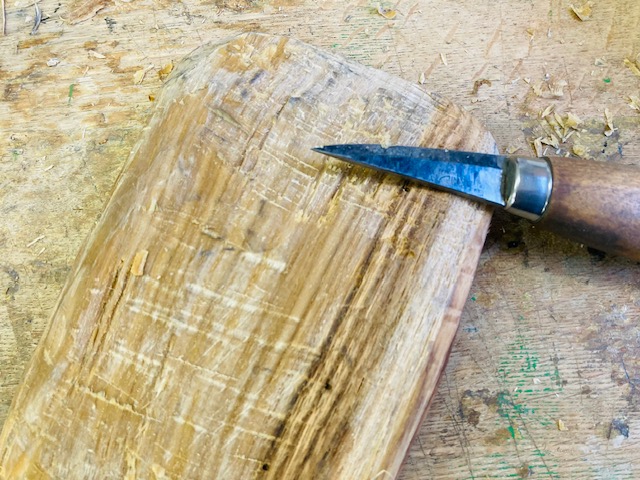 さらにナイフで形を整えていきます。このナイフワークは刃の状態がものを言うそうで、林さんがしっかりと研いだナイフを貸してくださいました。