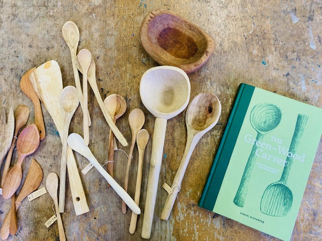 先生の作品です。スプーンやバターナイフは枝の部分を使って作られるそうですが、さすがの繊細さです。どうしたらこんな風に作れるのでしょうか?