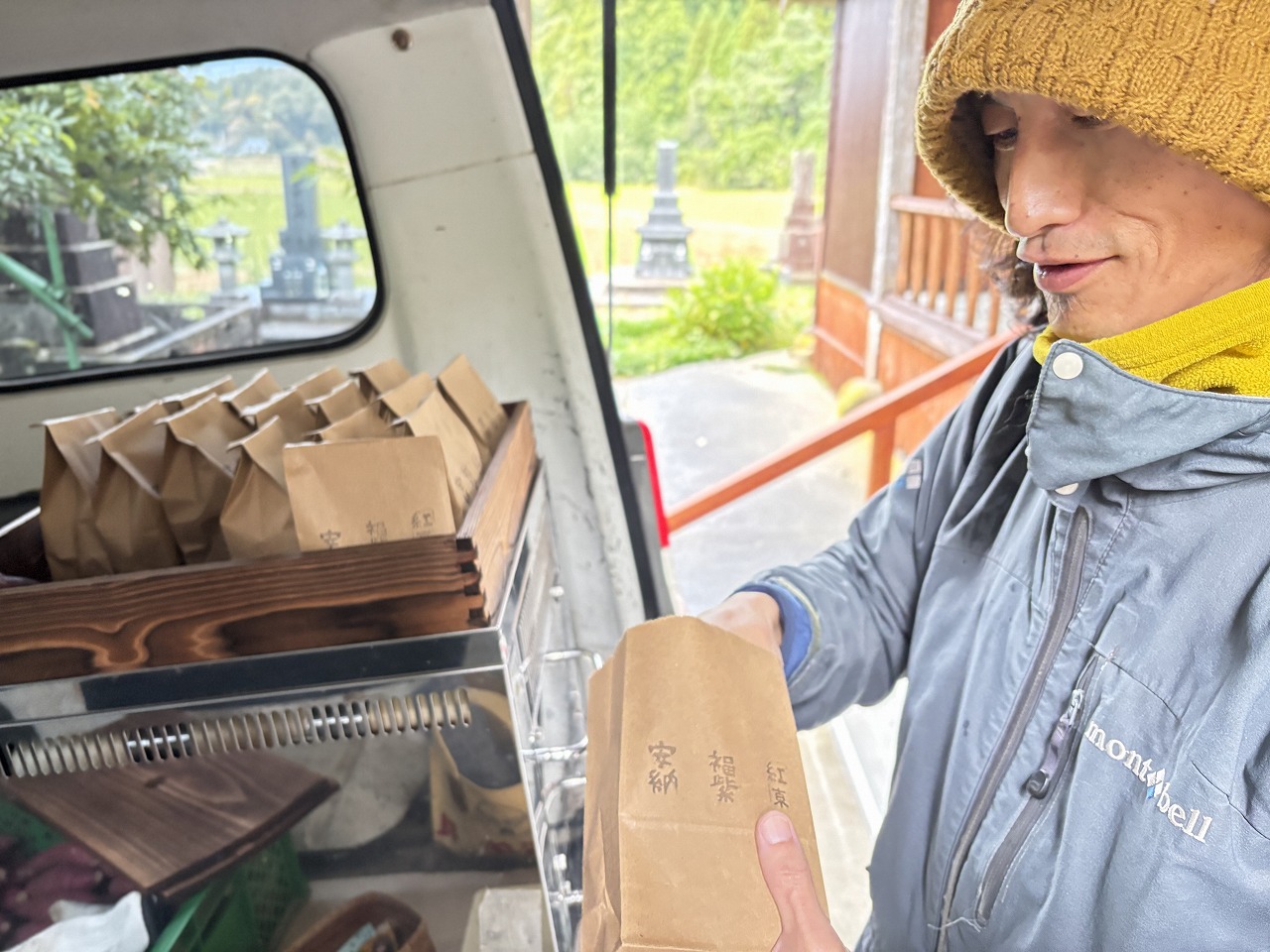 藤部さんは県内外各地で、自家製焼き芋を販売されています。使用するさつまいもはすべて氷見で育てたもの。 数えきれない程の種類のさつまいもを栽培されておられますが、その中からイベント用に4種類を用意していただきました。