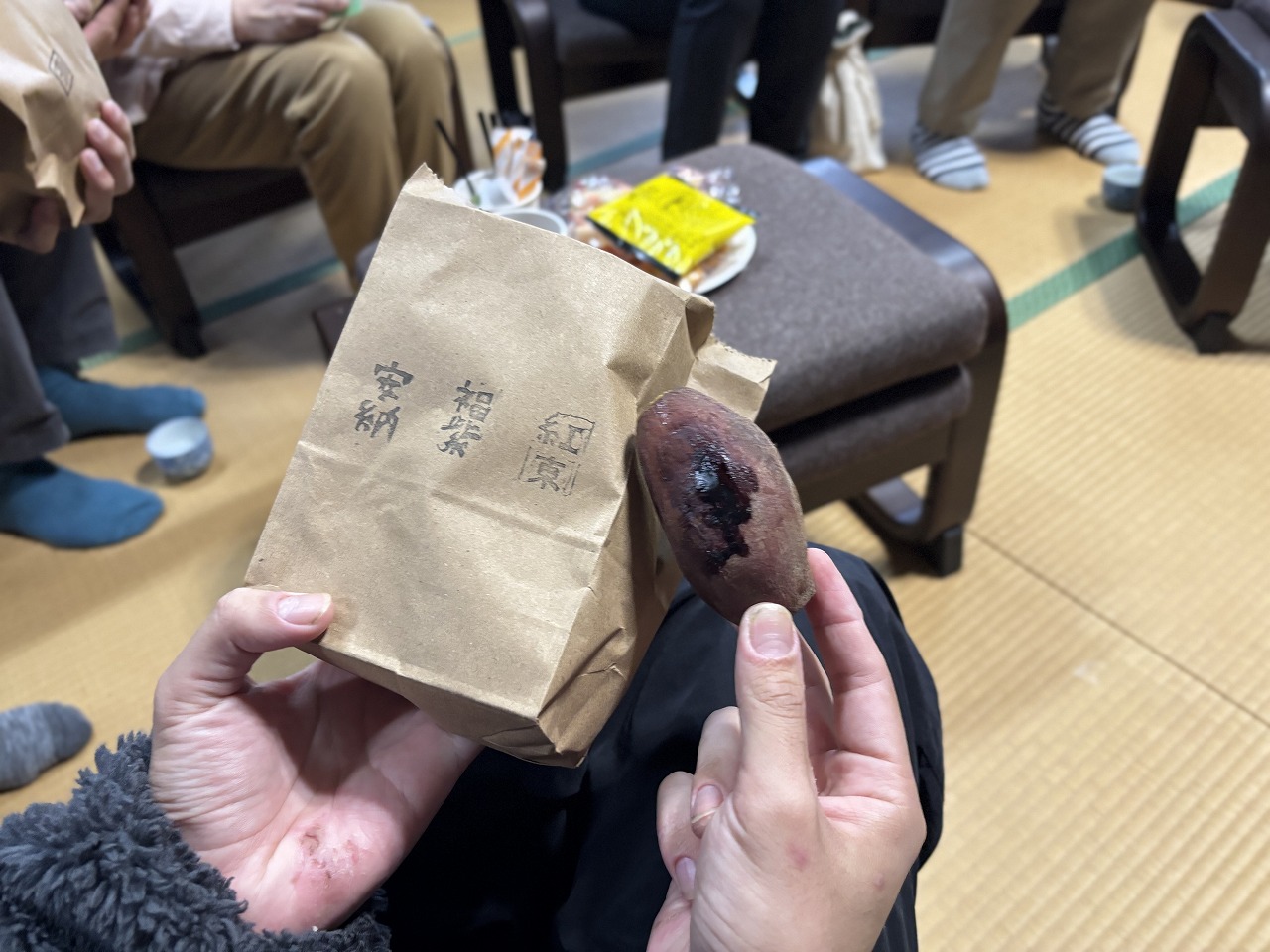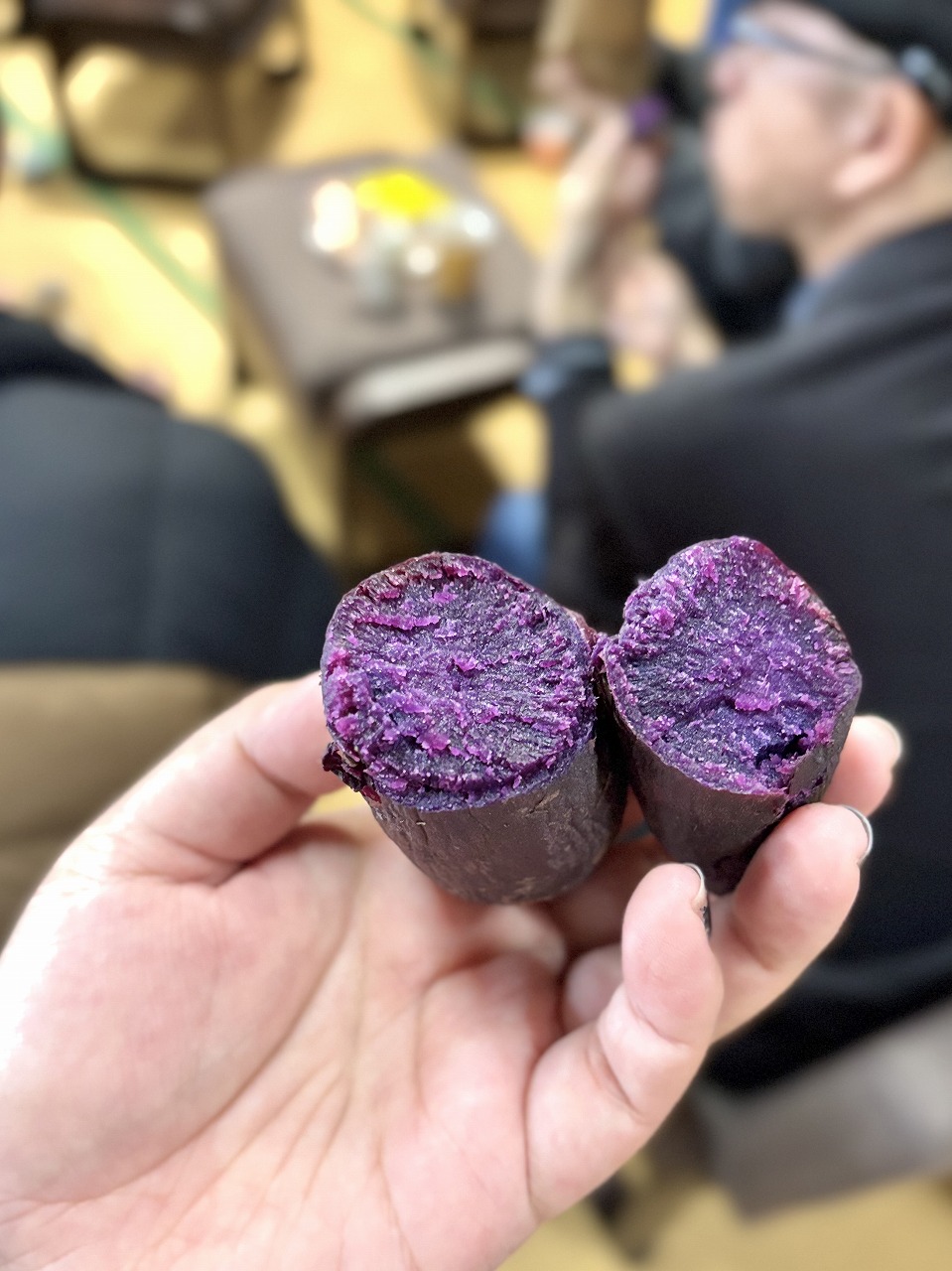 出来立てが食べられるよう、数時間前から時間をかけて焼いてくださいました。【安納芋、福紫芋、紅あずま、紅はるか】がでてきました。色んな焼き芋を食べ比べることができ、どれもホクホクで芋本来の甘味が感じられとてもおいしかったです。
