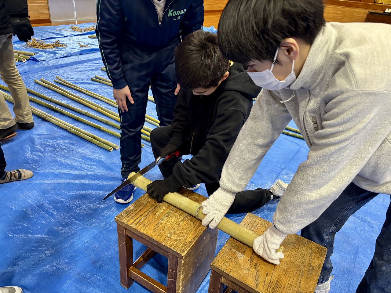 3月に卒業式を控えている6年生にとって、最後の学校行事となりました。この企画が進行する前に、子供たちに竹を使って何をしたいか意見を出し合ってやりたいことを決めたそうです。それが今回の竹馬づくりでした。「自分たちがやりたいと思った気持ちが形になり、実現して子供たちの心に残ると思います。」と校長先生がおっしゃっていました。そのお手伝いができて楽しく幸せな時間を共有できたことを、改めてうれしくおもいます。