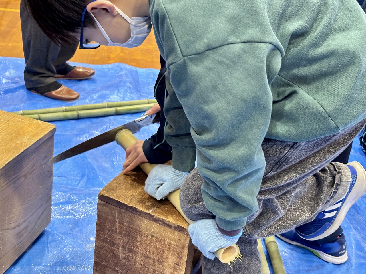 どのグループの子たちも、切る人と竹を支える人、自然とできていて素晴らしいなぁと感心しました。しっかり支えて切ることができているので、こちらがヒヤヒヤすることもなく安心して見守ることができました。